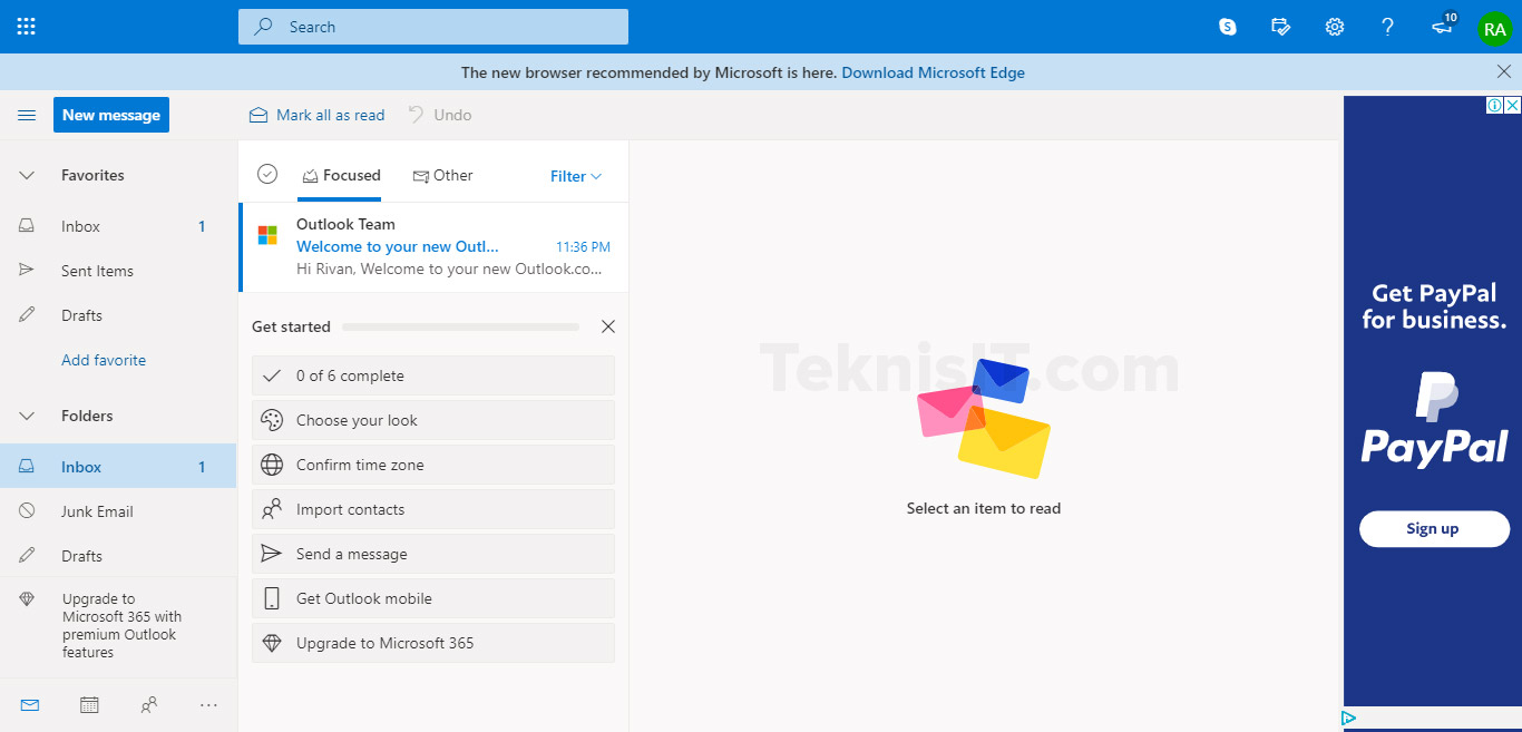 - Daftar Outlook telah berhasil dan Anda akan masuk di halaman utama Outlook.
