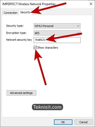 - Pilih tab Security, lalu ceklis Show characters.